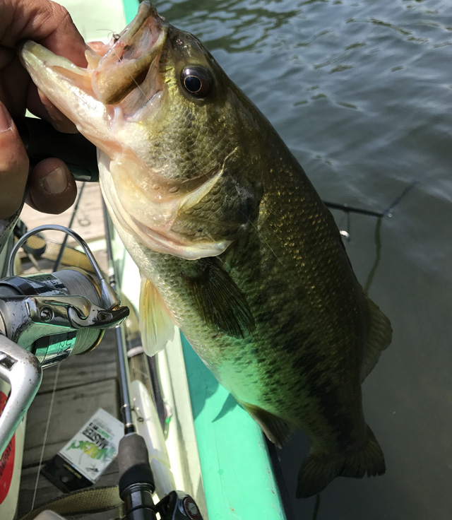 朝イチから水温が19.8度。いちおうパーカー羽織ったけど出船直後からTシャツ一枚に(ちなみに前回は防寒ウエア)。まだギリギリ5月なのにこの暑さは異常。さすが高崎市!
