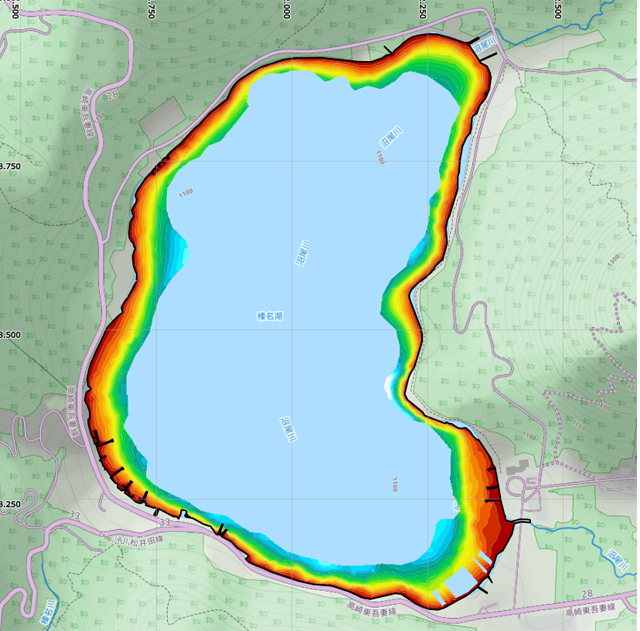 対岸方面の魚探データ撮りが手薄なのでキコキコとジクザクに魚探データ収集。