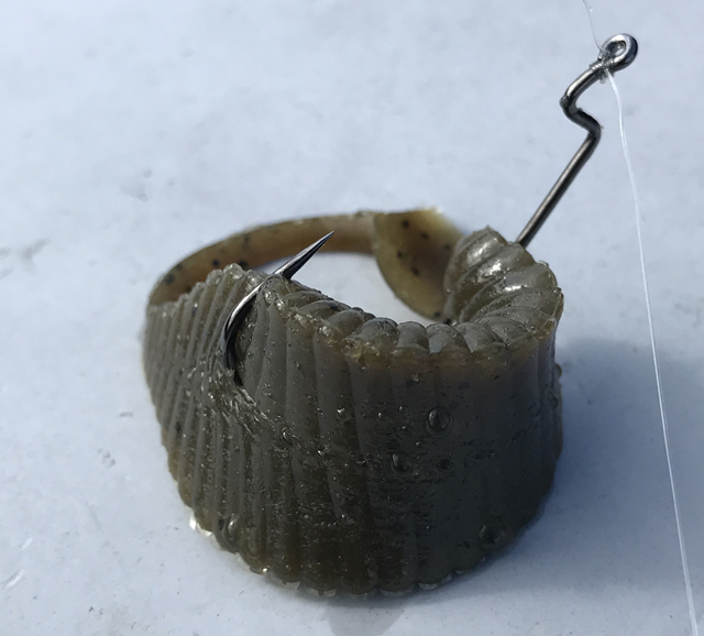 てことで「今日はボトム?」ってことでダウンショットリグを結ぶ。ジグヘッドでも良いんだけど、ワームをホイップさせた直後に食ってきたのもあって、あの動きを出しやすいのはダウンショットですからね。