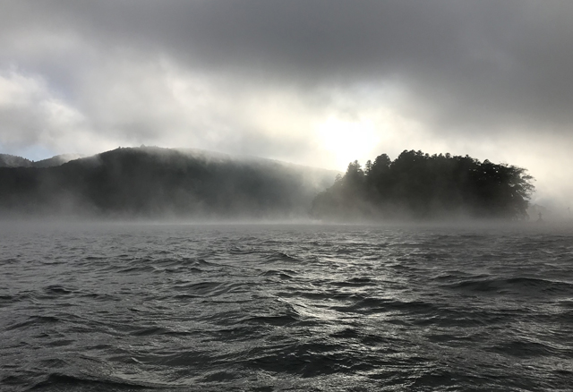 朝の気温7度!出船時は風ボーボー。急激な冷え込みで水面から湯気でまくり。