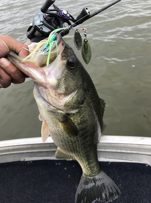 移動先は少し濁りも入ってたんで、ここはスピナーベイトでも行ける気がする。