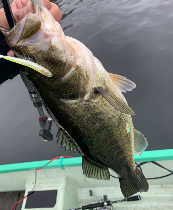 この日は何故かレインボーシャッドの喫水が深かったんですよ。オレなりにベストの喫水があるけど、今日はとっかえひっかえしても、軒並み沈みすぎになっちゃった。いつもよりリーダーがちょっと長いんだけど、それを超越してた。気圧のせいか?それとも前回使った後の乾燥が足りない?