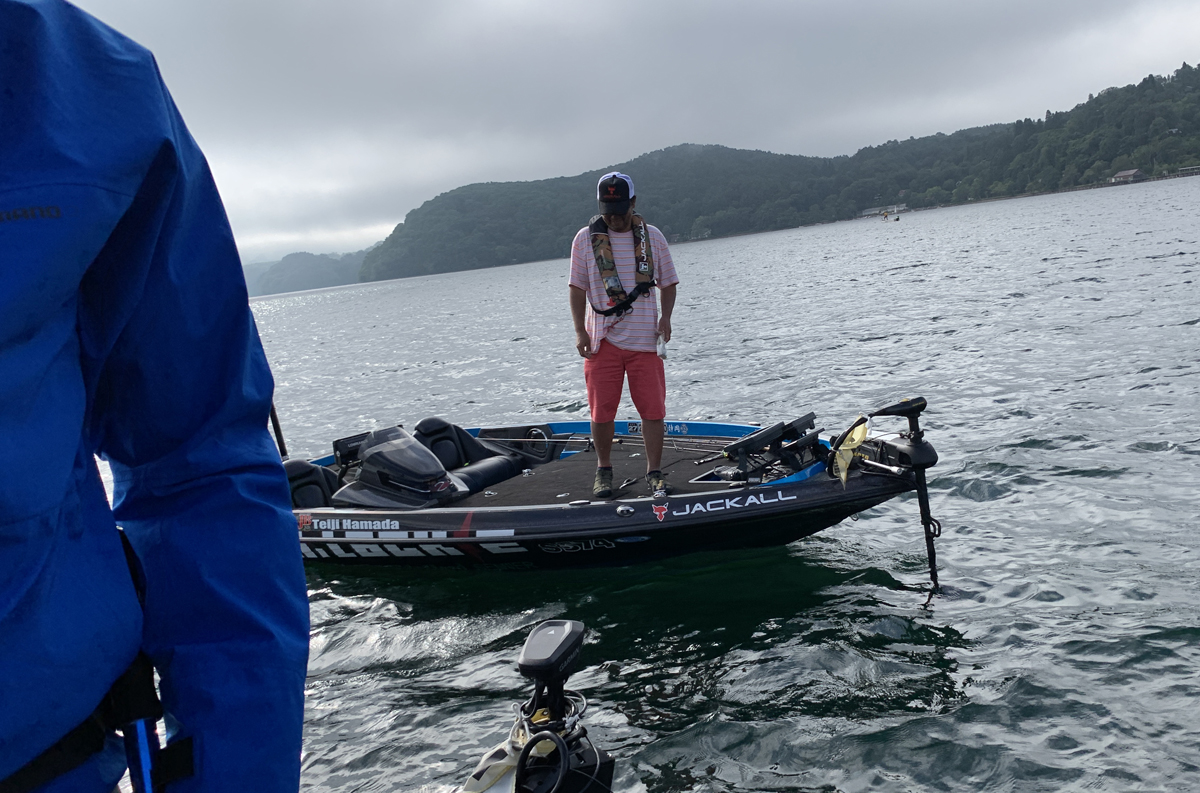 この日はJBマスターズ野尻湖戦の前日プラです。前日プラに無理やり同船させてもらったので邪魔はできません。そして朝イチに佐々くんから衝撃の言葉が発せられた。