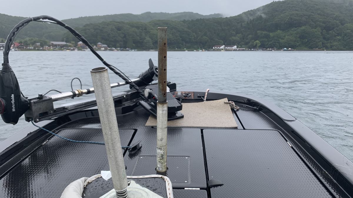 ってことでマスターズ野尻湖戦の2日めは小さい2馬力のボートをレンタルし取材艇として出撃!