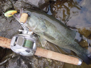 このままでは子バス専用ルアーになっちゃうよ!と、思った瞬間、バチュっと出たのはナイスサイズ!今日にしてはね。このロッド、滅多に使わないのでやや焦る。のされまくり。よかった~無事キャッチ。