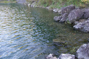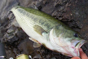 見える魚は、足下の岩に子バスがチラホラと、群れてない7cmくらいの小魚。2cmくらいのベイトの群れがたまに通過。夏にあんだけいたハゼ君もだいぶ減った。