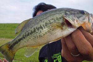 で、この釣りしてて、ギルバイトと思ってるのが実はバスってのはよくある話。カンカンカンとハイピッチなのはギルだけど、小さく「カン」っていうのはバスだったりも。そんな訳で、もう何でもいいからフッキングしてみたら、バスでした。