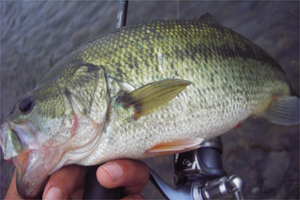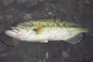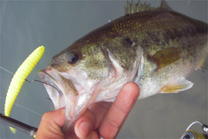 いつものようにライトリグでちょっと沖目をースローにスローに釣りをする。一応ポストの40アップを狙っているつもりなので、なんかに当たったりウィードに乗ったら更にスローにスローにポーズしたり。で、狙い的中!