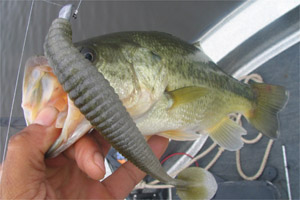 ヨメにエレキ任せたら、得意のゲーリージャンボグラブテキサスにナイスサイズが連続ヒット!オレは後ろでカバー手前をワンナップシャッドで広く探って