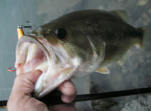 もの凄い勢いで放水しているので、ちょっとヤバイかなーっつー予感は的中。最初に入ったツレツレスポットは、減水してかなり様子が変わってた。バスが沸いてきたブレイクラインギリギリまでしか水が無くなってたorz。でも、昨日まで、一見何も無いのに、やたらめったらバスが沸いてくるスポットにぎっしりウィードが生えていることが判明。減水でウィードの先端が見えてた。そのウィードと急なブレイクの隙間からバスが沸いてきた模様。なるほど!