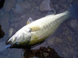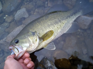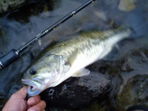 もう一歩進んで同じことしたら同じく釣れた。さっきのバスと長さも体色も口の傷も痩せ具合もそっくりで、同じバスを釣ったか!と思ったけど、さすがに違ったけど。