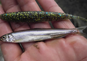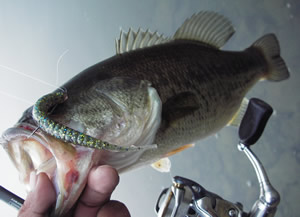 ちょっとシチュエーションを変えてみる。岬+ウィード系を狙ったらバイト続発!でもやっぱり乗せられず。ってか、子バスかな?だんだんムキになってアレコレワームを変えてフラトリで2本キャッチは