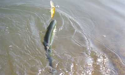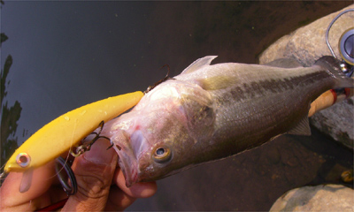 この場所はバスよりマスが多くてミノー・シャッドやっているとバスより俊敏なマスが先に喰う。