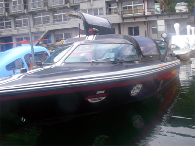 話は逸れますが↑これ、この手の湖によくある高速モーターボート。船体のカラーリングが昔の今江さんのレンジャー風。