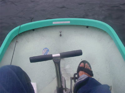 波打ち際~水深50cmくらいをキコキコと漕いで回る。