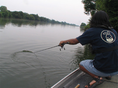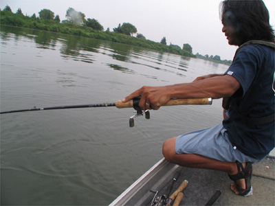 この川でもカットテールかよ!勘弁してよ。世界一釣れるワームの一つだけど、オレはツレン。ここで初めてスピニングにラインを通してジグヘッドで狙うもオレにはノーバイト!