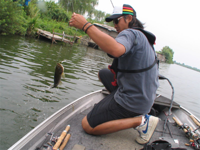 前回と同じく中流域は魚が濃いいのか、それともお昼前後に魚たちがカバーに入るのか良くわかんないけども、テキサスのカバー撃ちでポロポロ。