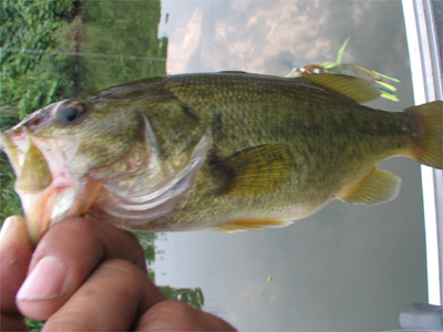 けど、小さかった・・。ちなみに今回、アルミボートでも広画角な写真を撮るために広角レンズのカメラで撮ってます。その関係で魚がいつもより大きめに映ってます。魚を見るときに、拳も一緒に見てください。思いのほか子バスなので(笑)