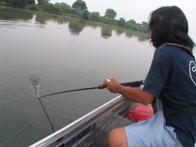 こりゃ楽しい!ってことで、とがクランク2005の中ではもっともまともに泳ぐとがクランク2005スーパーハイピッチにヅルルル動くバージョン(見た目は間抜け)を投げてみた。ボートっぺりまで来た瞬間引ったくるようなバイト!