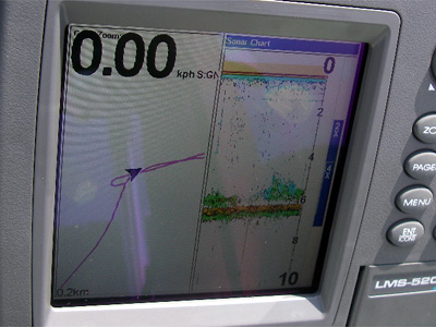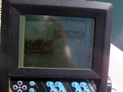 あ、そうそう、今回はGPS魚探を積みました。上の写真のように。レンタル艇がたまたま俺が使っているHONDEX5600だったので、見比べる良いチャンス。