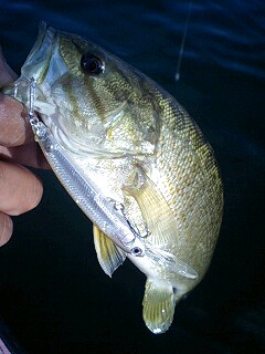 ヘラ用浮き桟橋へリップライザーを投げてみた。今江さんのビデオで見たリッピングやらを試してみたら・・・・。スゲーっ。リップライザーを浮かせる度にどこからともなくバスが10匹くらい沸いてきた。それを繰り返しているうちにバスが100匹くらい集まった!マジでスゲー。試しにビーフリーズをトィッチしたけど駄目。ミノーの浮き上がりに滅茶苦茶反応してた。こんな凄い集魚力を見たのは、西湖で初めてタロンを投げたとき依頼の衝撃映像でした。