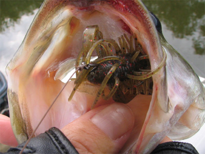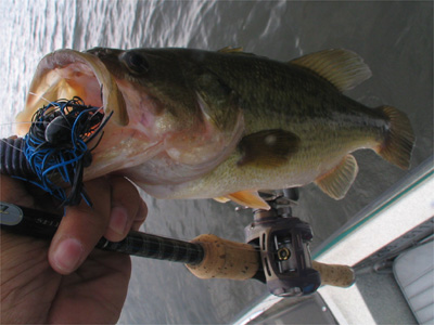 ヘタレなフリップでも届く距離で釣れるので、ベイトタックルで1/16ozスモラバ+4インチグラブをフリップ。