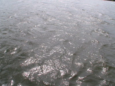 ブレイク落としフットボールで1匹。けどこれも単発。風強すぎでブレイクラインの良いところを通すのが難しいのよねぇ。しばらく粘ったけどノーバイト。もう駄目だ。疲れちゃったよ。久々に波のあるところで1日半エレキ踏んで脚が弱っているヘタレ。なにもかもがイヤになってデッキに座り込む。しばらく風に流される。