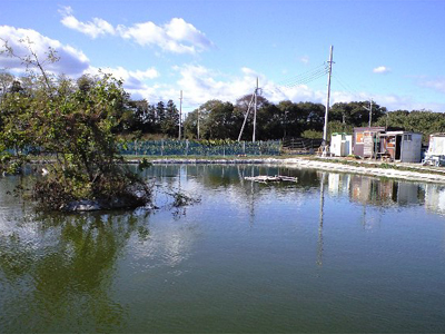 ってことで昼に到着。17時までの券を購入。オレ3000円ヨメ2000円。池が2つあって、写真が「鯉・アオウオ・ナマズ」が居るらしい。もう一個の池はニジマス。アオウオってのがステキじゃないですか。で、管理棟の前を歩いたら、足音に反応して浮いてくる魚が数匹。よく見れば、いやよく見なくても・・ブラックでした(嬉)。