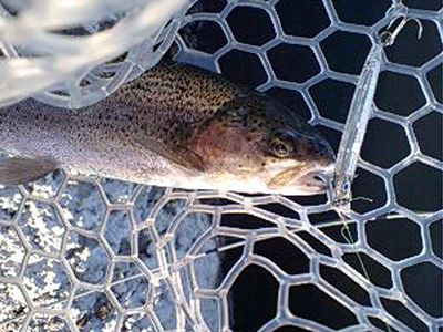 気分転換でニジマスの池へ。スプーンでポツポツ、ミノーでポチポチとニジマスを釣った。マスに飽きた頃、時は16時前で夕暮れチックに。