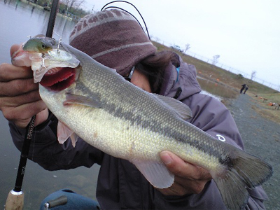 昼飯前に何気なく投げたヒッコリー(バスデイのマス用クランク)でもう1匹キャッチ。