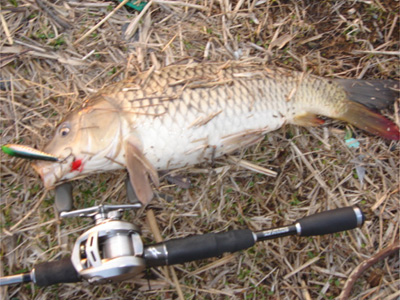 直後、バスじゃないと解る引き。やっぱりキミかぁ。それでも何も釣れないよりは100倍嬉しい。