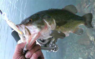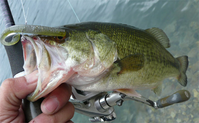 曇天で昨日より暗くなるのが早く18時20分でもう限界。とりあえずまともなサイズが1匹混じったので嬉しかったです。ってか、ヨメは結局1時間弱で12匹のスーパー入れ食いでした。やっぱし西湖サイコー。去年まで沈み気味の子バスはシンキングミノーで釣ってたけど、シャッドもありだなーって感じでした。