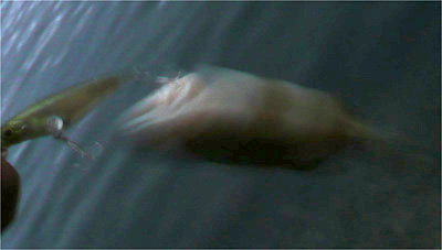 たまに深いところをウロウロしてるのが見える、背中真っ黒のヤツ。だいたいこの時期ワンテンなんかで1匹くらい釣れたもんですが、2日目にしてようやく1匹。