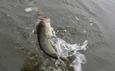 行き足があるにせよ、とりあえずバイトしたら咄嗟にエレキスィッチから足を離すことを心がけつつも、ジリオンでキャスト&リトリーブ。良い感じでフッキング成功!