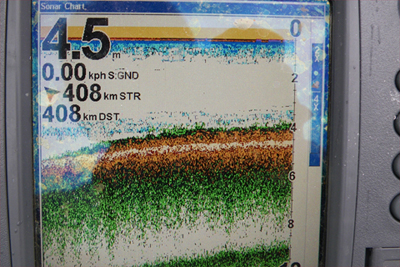 沖にゴッソリと縦方向に固まっているかとおもいきや、3~4mに帯状でいっぱい映る感じ。ボート屋側のフラットだと、ちょうどウィードのラインと被るので、よくわかんなかった。これベイトか?って半信半疑だったんだけど。だからといって、3~4mでバスが釣れる訳でもなく・・・。難しいぜバス釣りは。