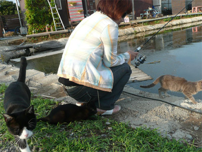 その一方、ネコだらけになっていたこの管釣り。ヨメはネコ9割釣り1割でしたが、それでも数匹キャッチ。