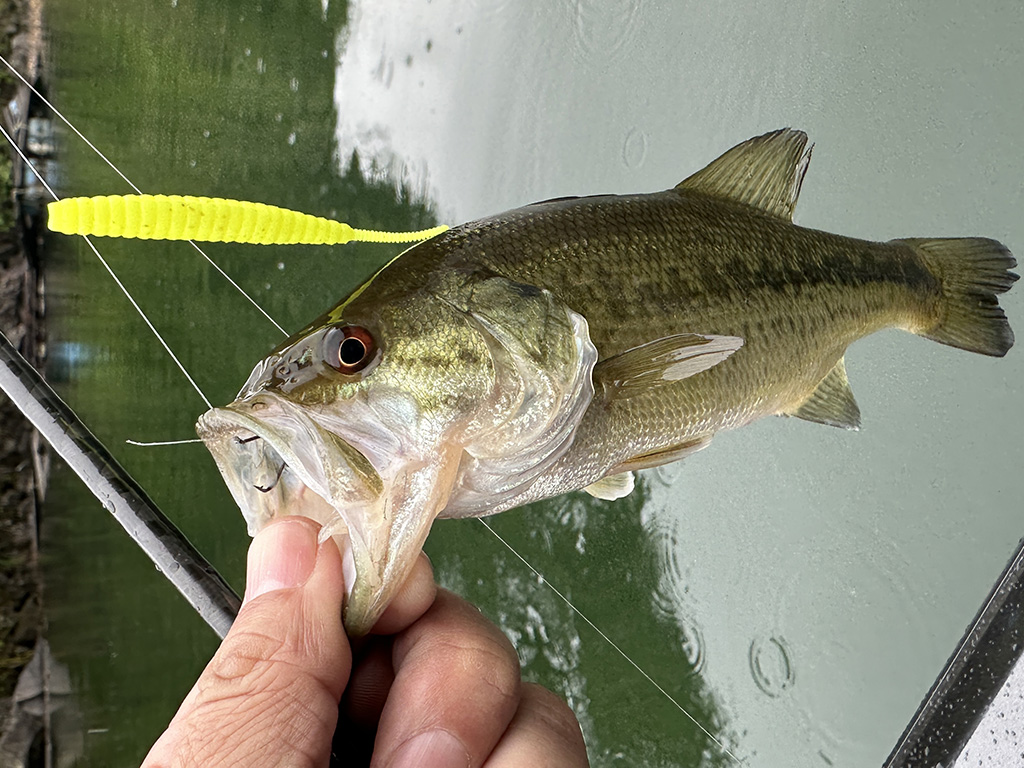 ガイドさんで、お客さんがお子様だったり初心者だったりするとき、一番簡単確実に釣れるのがこの釣りです。特にデスアダー4インチは自重(4gちょい)あって投げるのも簡単だしダートも簡単にできる。3インチだとちょっと軽くて初心者が使うようなタックルだと投げづらいしダートさせるのが4より難しい。なので4インチがベストです。