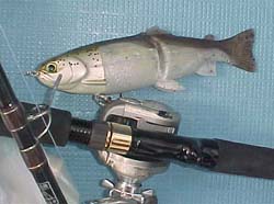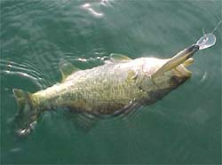 トノは「ミノーってこんなサイズしか釣れないの?」ってしきりに言う。いやぁまさか、開発者もマメを釣るために作っている訳じゃないとおもうがのう。確かに小さい。「ミノーはダメダメだね」とトノが言った瞬間「あ来た!」とか言って35センチクラスを釣りやがった。くー羨ましい。