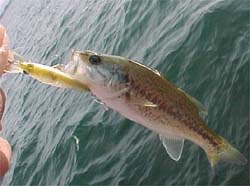 スクワレルのファーストキャストでマメが追ってくるのが見えた。トノもまた小さいのを釣った。大場さんはたぶん呆れていただろうけど、我々は楽しくて仕方ない。相手が小さいのでトノからロッドとベビーシャッド50SPを借りる。狙いが的中し一発でヒット!これはイレグイか?と思ったが甘かった。再び、スクワレルをキャストしまくり10センチクラスを追加。サイズはともかく今日は俺が一番釣ったぜ。へへへ。終了時刻が迫りボート屋方面へ向かいながらシャローを流す。