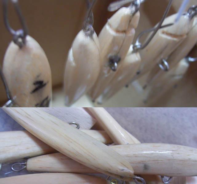 自作ルアー用品箱から推定5年前の作りかけミノーがいっぱい出てきました(写真下)。前出の「ザ・ミノーメイキング」に載っているHMKLのやつです。アルミ張りの手前で止まってた。これを続行。写真上はラパラCDモドキ。試しに仮リップ付けてみたけど、全然ダメ(涙)。ロールはロールで難しい。っても、これらは本当はどーでも良くて、本命は西湖スペシャルと山中湖DEEPスペシャルなので、そっちは気合い入れて調整だ!調整ってナンだよ。