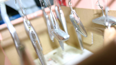 CLICK TO ZOOMUP一言で言えばラパラアイスジグのパクリ。山中湖のDEEPでフラッシュトリックスの常に反応が良かった事があった。アライブシャッドを上回るワームは初めてで、かなり衝撃的な出来事。でも、バイトだけで乗らないことが多かった。そんな訳で「見た目がリアル」なのは効果的なのか?って感じでした。あの水質の10m前後で見えているかは怪しいけどね。昔、真冬にゾノへ水中カメラを投入したら一応光は届いていたけど。