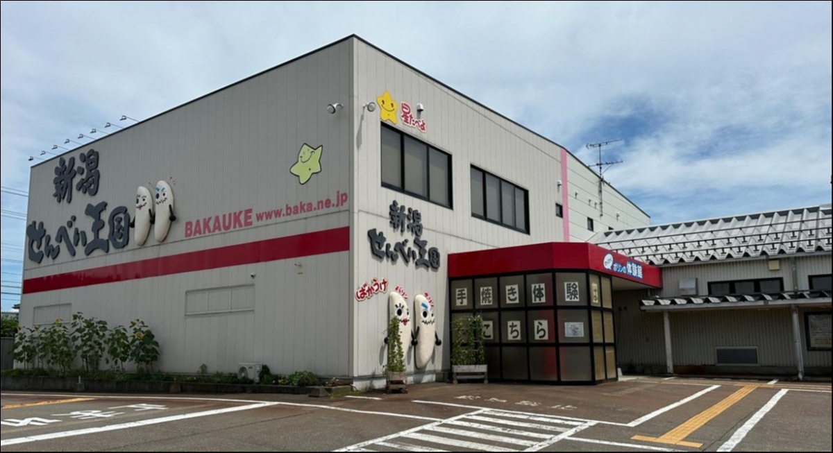 せんべい工場施設内にあって、じぶんでオリジナルのせんべいをつくる体験とかできる施設。別棟でお土産もあり。