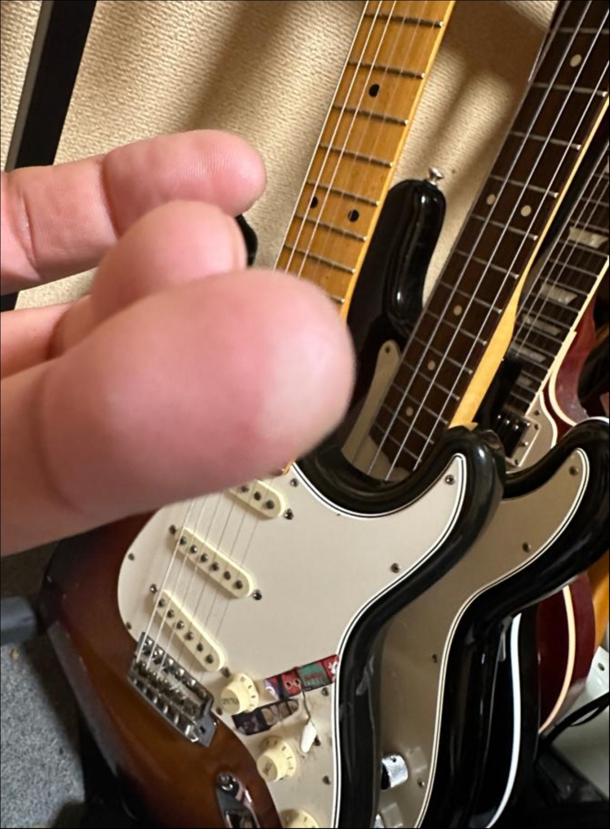 あと5年ぶりに左手首が腱鞘炎っぽい軽い痛みが😆 チョーキングするたびに痛みが走るんで、1~2弦はチョーキングしないことにした。身体大事😆