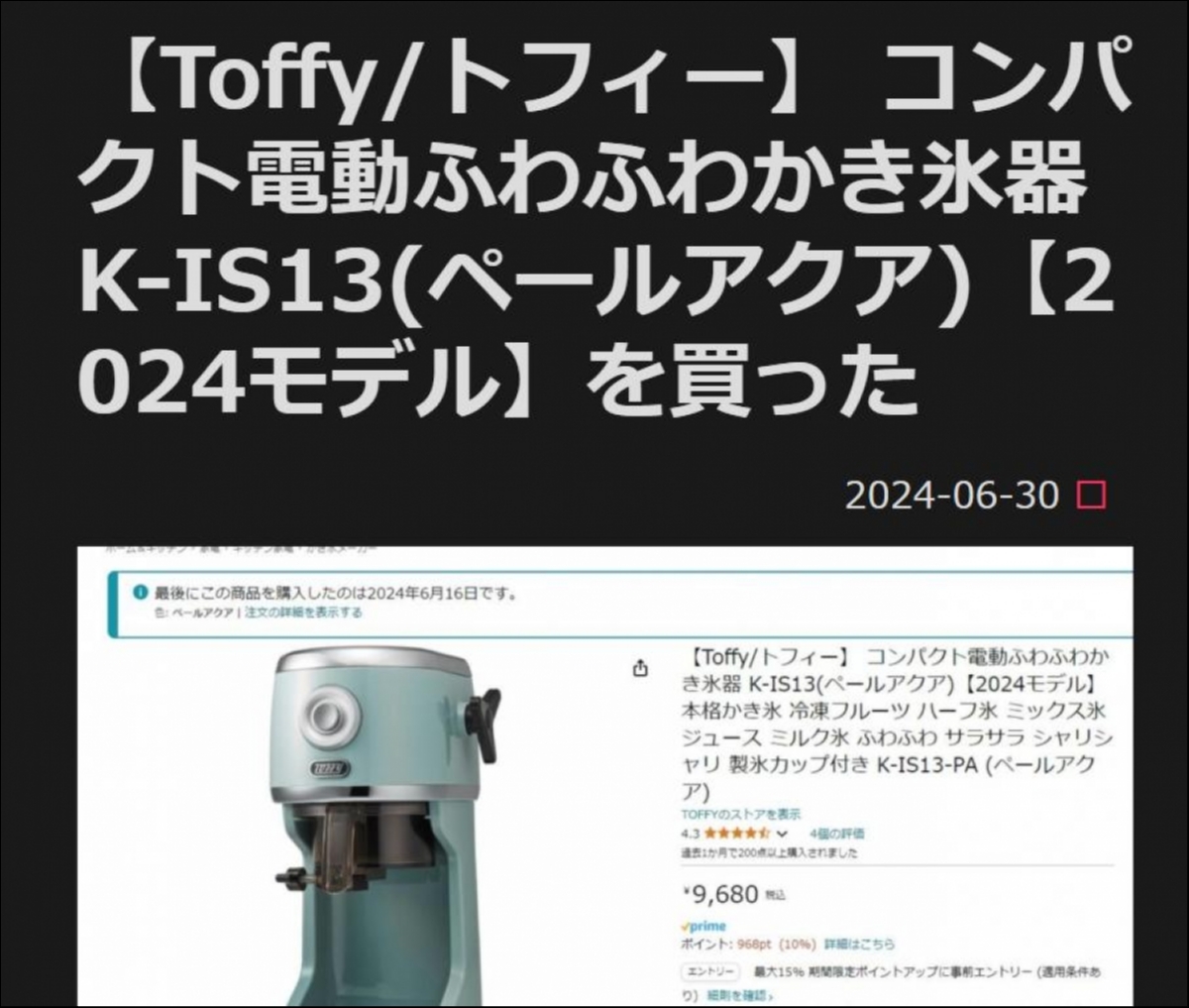 ってことで先日アップしたかき氷機ほんとに買ってよかった👍