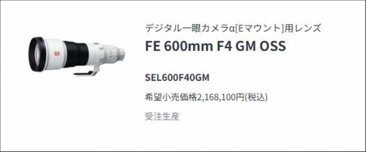 ソニーの600mmF4レンズで210万